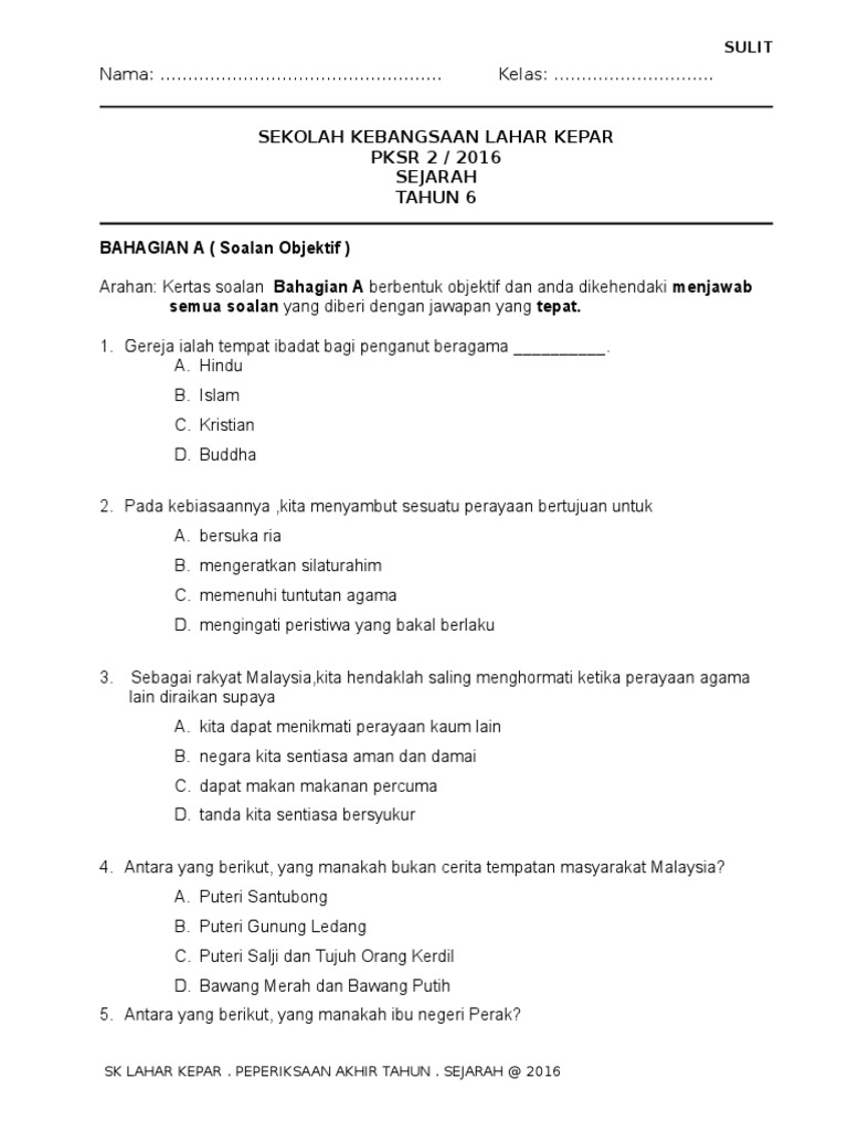 Soalan Peperiksaan Awal Tahun Sejarah Tahun 6 Menarik Peperiksaan Pertengahan Tahun Sejarah Tahun 5 Skoloh
